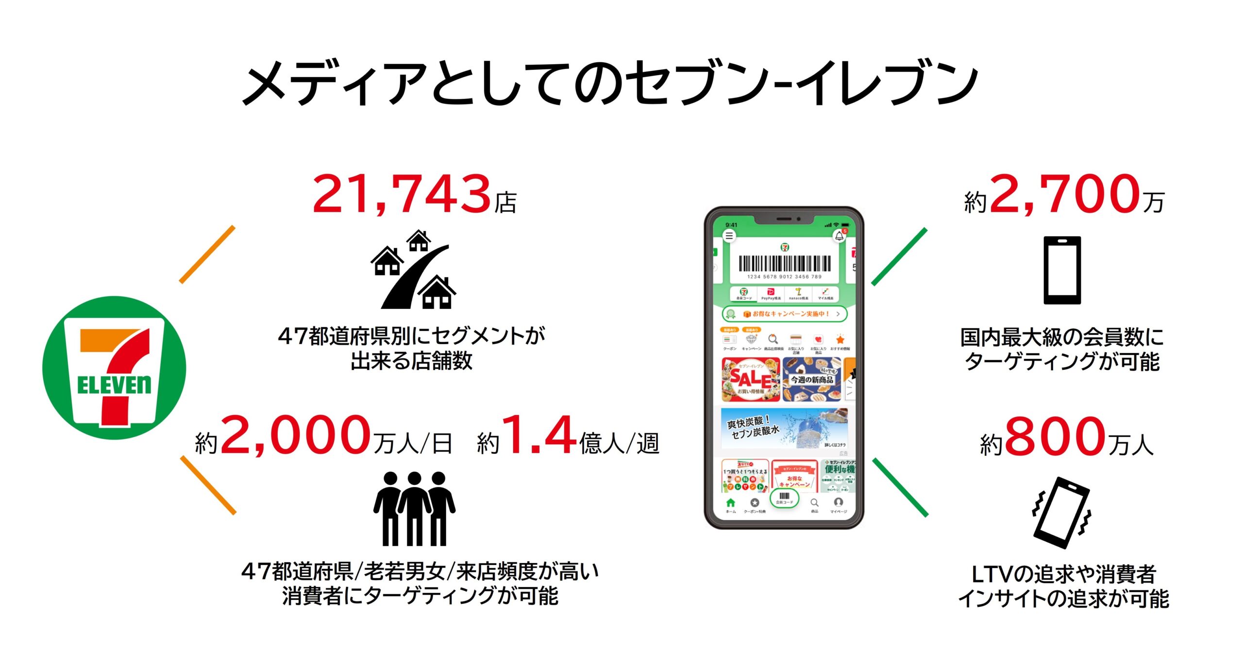 セブン-イレブン・ジャパンのリテールメディアは国内最大級の会員数を有するセブン-イレブンアプリと店舗を活用した生活者のあらゆる購買行動の場面でコミュニケーションが図れる広告メディアであり、当社が指定販売代理店に認定されました。