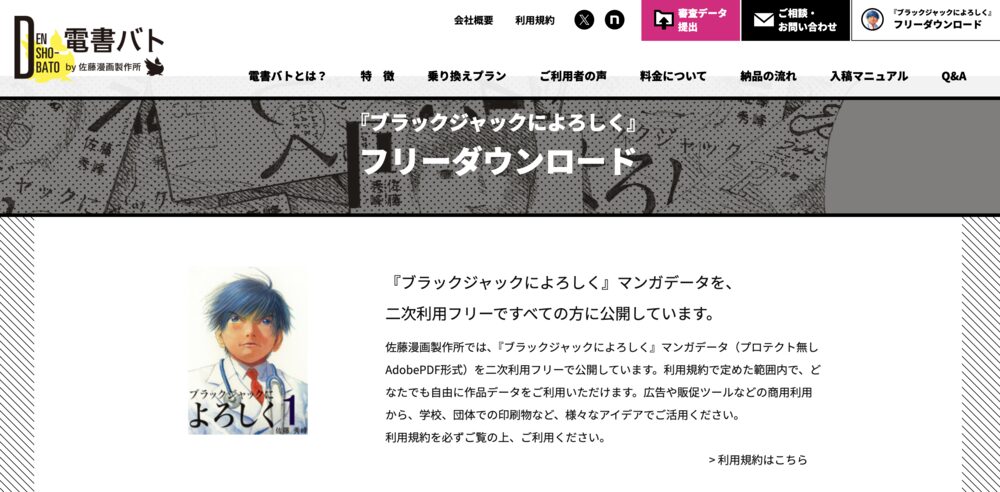 佐藤漫画製作所|電書バト「ブラックジャックによろしく フリーダウンロードページ」