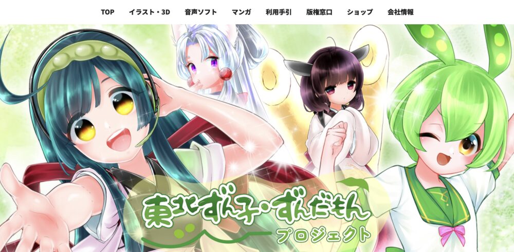 SSS合同会社が運営する「東北ずん子・ずんだもんプロジェクト」は、東北地方の振興やクリエイター支援を目的として、キャラクターの利用を広く許諾しています。