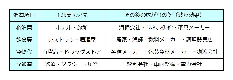 ここには、外国人旅行者が日本国内で行う宿泊・飲食・買い物・体験サービスなどの消費活動全般が含まれます。