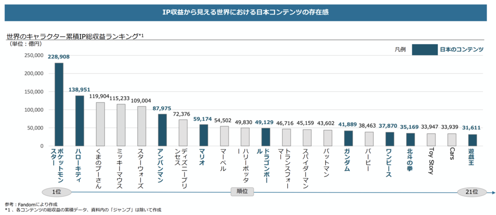 日本のIPビジネスは非常に活発であり、ゲームやアニメを中心に大きな国際的影響力と市場規模を誇っています。