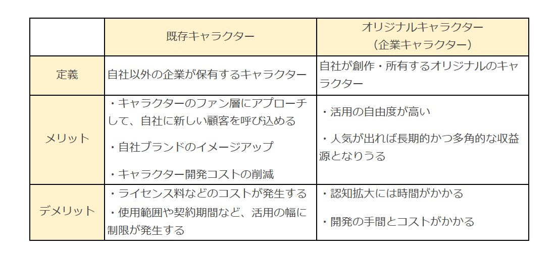 キャラクターマーケティングに活用するキャラクターは、既存キャラクターとオリジナルキャラクター(企業キャラクター)の2パターンです。